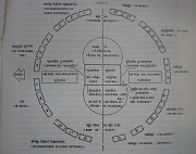 レヴィストロースが起こしたボロロ村の実際の配置(同書254頁) ボロロ族が抱く理想の村落形体 ボロロ族の正装 彼はポルトガル語に 堪能で調査中、レヴィス トロースの通訳として 協力した ![]() ボロロ族の村落 中央に男屋を置く |