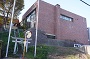 左写真は正面玄関、雨よけ庇に近づくとチャイムが聞こえる。右は玄関左手から。写真二葉に見られる通り外壁に煉瓦がふんだんに積まれている。落ち着いた佇まいの壁に向き合うと温もりが感じられる、来館者は思わぬ安堵に胸を撫でおろす。